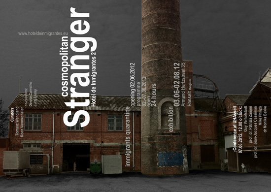 List of Inmigrants – artist Arun Kumar: India, Angela Freiberger: Rio/NY, JaeWoo Lee: Seoul/NY, Juan Ford: Australia, Marlon Griffith: Trinidad &Tobago/Japan, Nancy Popp: USA, Mark Salvatus: Philippines, Charlie Citron: Holland, Martin Zet: Czech Republic, Redas Dirzys: Lithuania, Denise Carvalho: Rio/NY, Koen Vanmechelen: Belgium, Raman Traciuk, Olga MaslowsKa: Bialorus, Harro Schmidt, Matthias Reichelt: Germany, Pasko Burdjelez: Chroatia, Enrique Badaro: Uruguay , Santiago Velazco, , AlejandroTurell, Stano Masar,, Otis Laubert, Magda Stanova, Juraj Carny: Slovakia, Centrala Rybna, Tomasz Wendland, Artur KIosinski, SIawomir Sobczak, Aurelia Mandziuk, Andrzej Wasilewski, Kamil Kuskowski, Waldemar Wojciechowski, MaIgorzata Markiewicz: Poland, Noam Braslavsky, Ran Slavin, Gil Ye8man, Hagit Barkay: Israel, Istvan Balogh: Switzerland, Jaan Toomik: EstoniaConcept of the event: We all will be immigrants, stay in one “Guarantine”, share one dormitory, eat and cook together, eventually go to a social canteen in the city of Hasselt. In that time we will continue work on new art pieces, performances, installations attempt conference at the Hasselt University and will get a privilege to receive individually a genetic code test. We will have an opportunity to discuss with students and be visited by great amount of audience. Our stay as immigrants is a part of a project, so we hope to interact with audience, establish rules of coexistence between 40 artists coming from all over the world and discover a new social relationships, which will reveal new personal relationships in the 21 century.