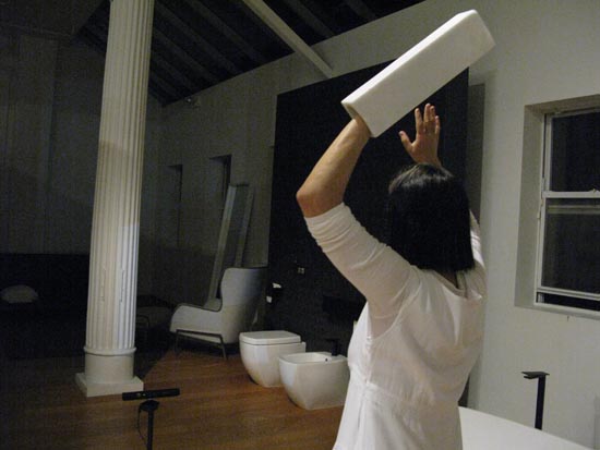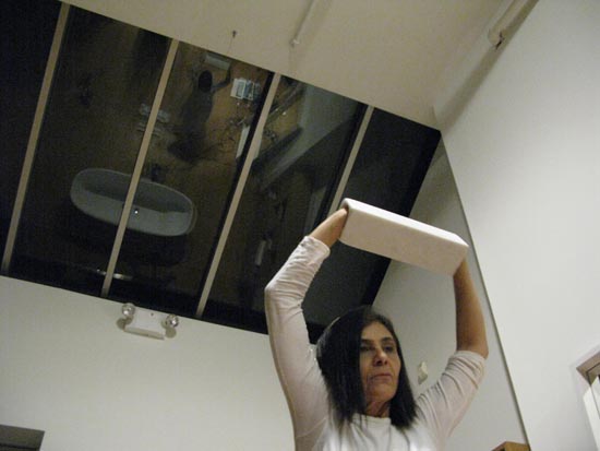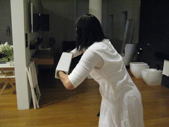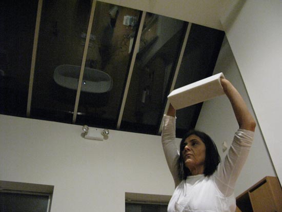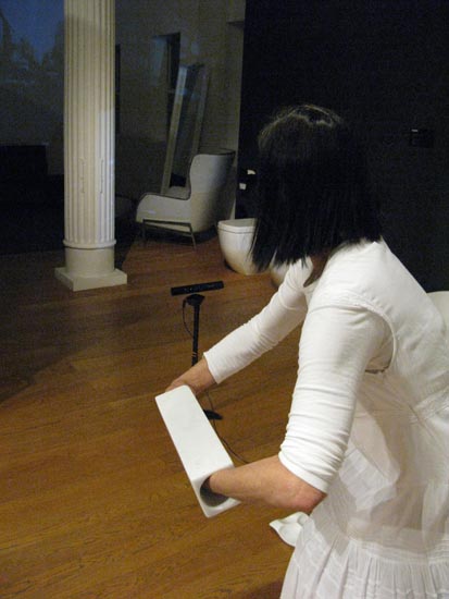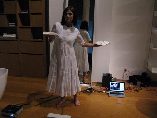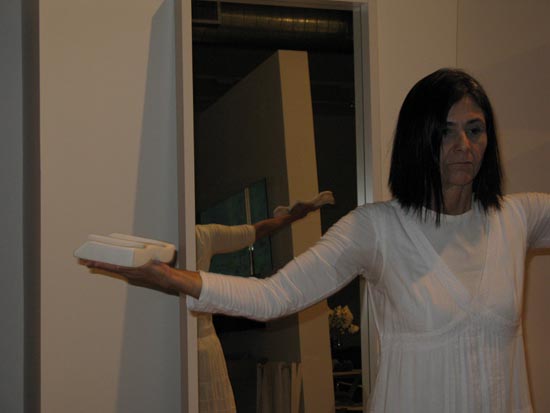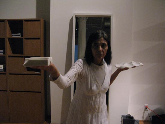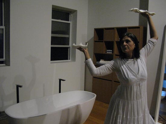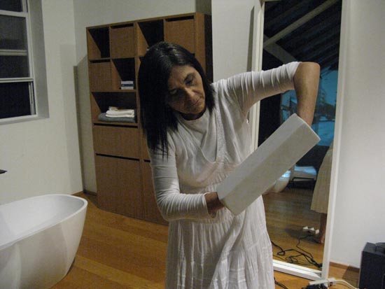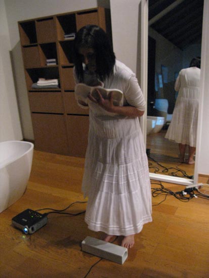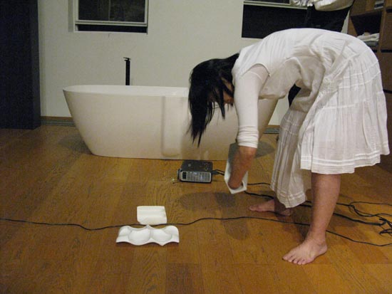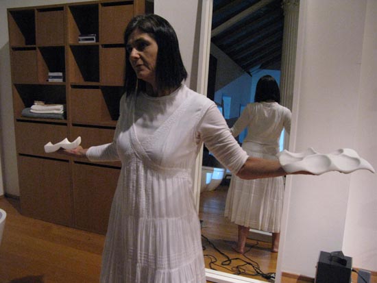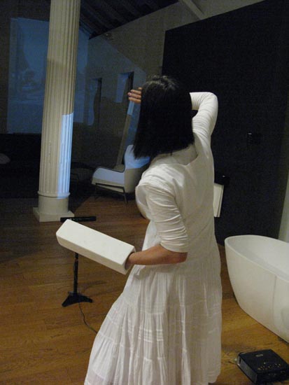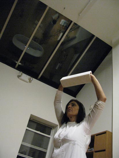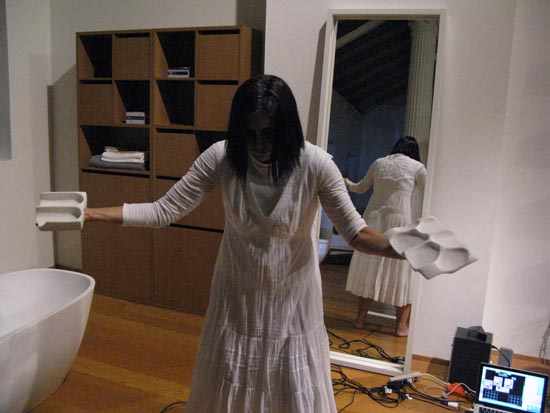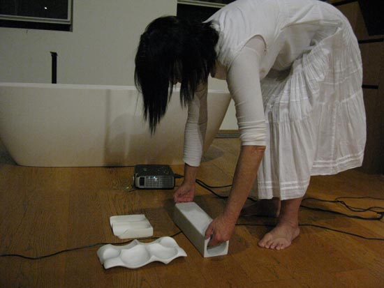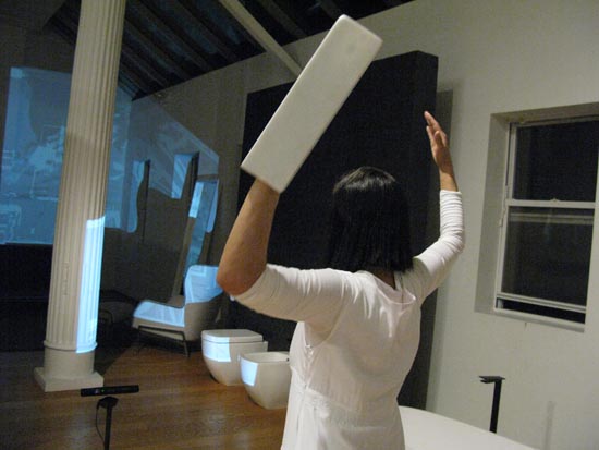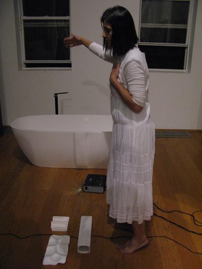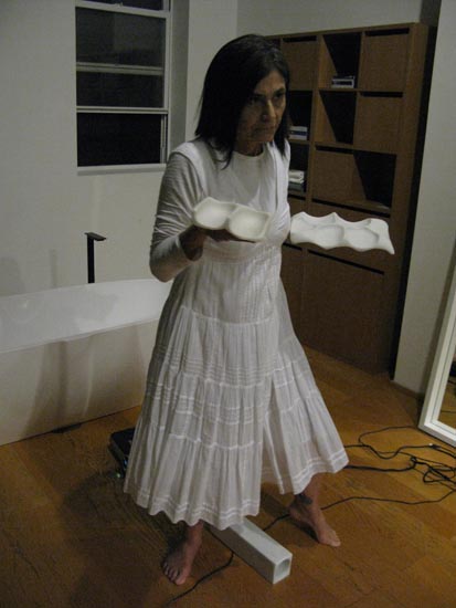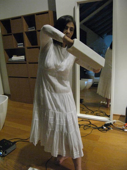 A performance at Studio Anise of Angela Freiberger collaboration with Phillip Baldwin and Laurie Altman’s composer score with marble sculpture, the kinetic in W, Y, Z with the visuals in an interactive series of sound and film triggers with the kinect controlling both sides of the performer body, she control pitch, speed and contract within X,Y and Z space. “Excavation of Emptiness” is the first experiment, work in progress. Photos by Gianina Jimenez Barrantes. Thanks for Paul Anis.