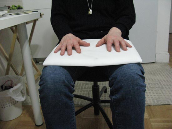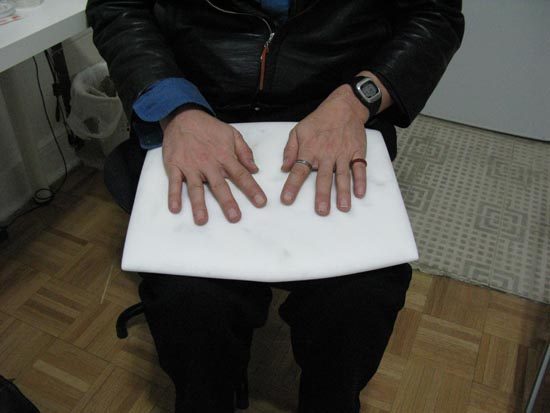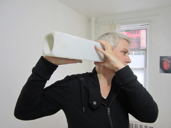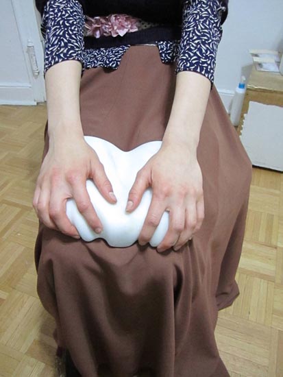 These sculptures are like silent instruments that are to be used in contact with the body of the viewer. Since this instrument is touched, you are able to listen your own inner sound of your body. These sculptures also function as extension of the body.